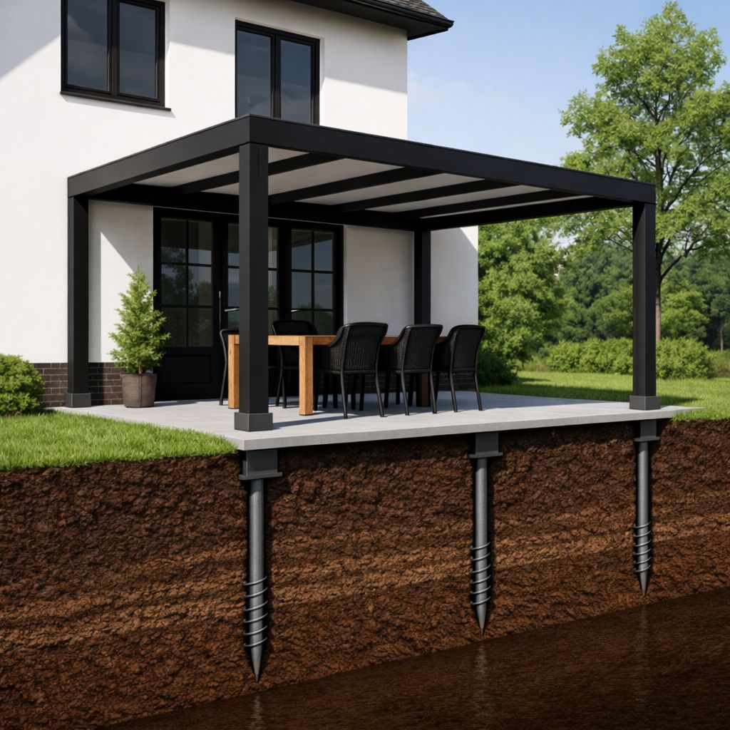 Budgetvriendelijk: Door het minimaliseren van graafwerk en het vermijden van dure betonstortingen, bespaar je significant op tijd én materiaalkosten, zonder in te leveren op stabiliteit.